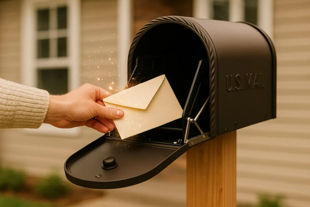 A mailbox being used effortlessly (ideally by a senior or someone with limited mobility)